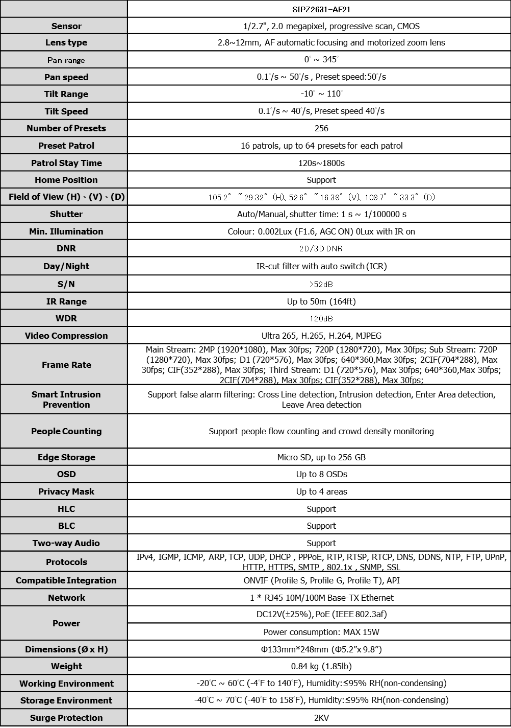 • High quality image with 2MP, 1/2.7"CMOS sensor